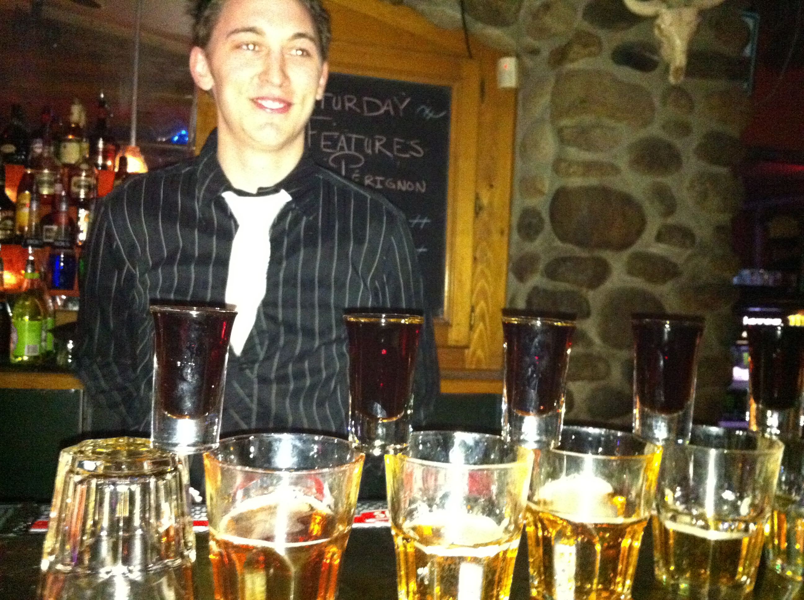 Jealous. In our little, country town you can only get drinks at TGI Friday’s, where they play loud, country music and the bartender is a joke. He wears a red shirt with iron-on dragon patches and insists on being called A- Ron instead of Aaron 😦