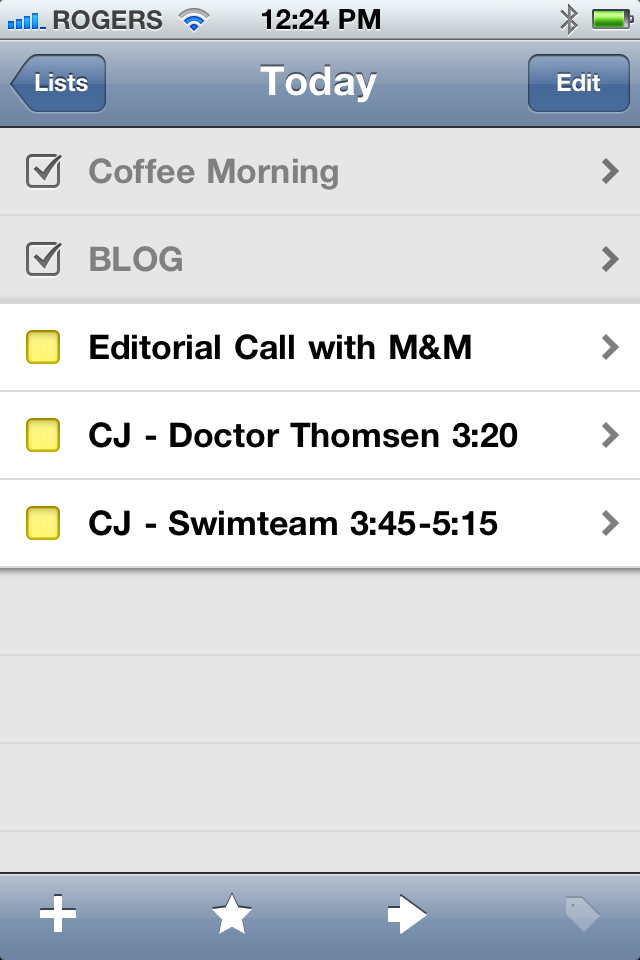 To illustrate my point, this was my to-do list on Monday, which I keep track of my Things app for iPhone: